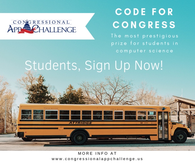 Congressional App Challenge by Suzanne DeBrango | Oct 4, 2019 | Announcements, Blog, Events ABOUT | CONTACT | SERVING YOU | MEDIA CENTER | LEGISLATION | ISSUES | RESOURCES October 3, 2019 Share this: Click to share on X (Opens in new window) X Click to share on Facebook (Opens in new window) Facebook Click to share on Pinterest (Opens in new window) Pinterest Click to email a link to a friend (Opens in new window) Email Click to print (Opens in new window) Print